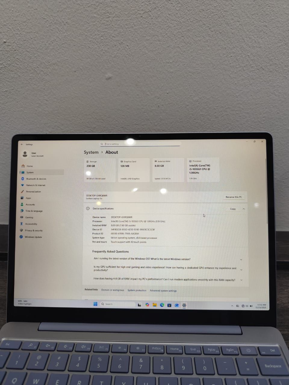 Microsoft Surface Laptop Go Touch — Core i5 10th‑Gen | 8 GB RAM | 256 GB SSD